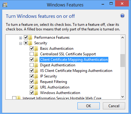 - On the Server Roles page, expand Web Server (IIS), expand Web Server, expand Security, and then select Client Certificate Mapping Authentication. Click Next.