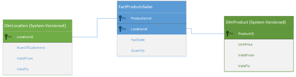 INNER JOIN DimProduct FOR SYSTEM_TIME BETWEEN @sixMonthsAgo AND @now AS DimProduct_History