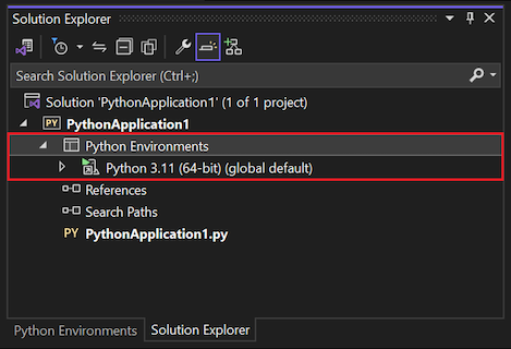 U kunt ook de sneltoets Ctrl+K, Ctrl+' sneltoets gebruiken om het venster Python-omgevingen te openen vanuit Solution Explorer-.