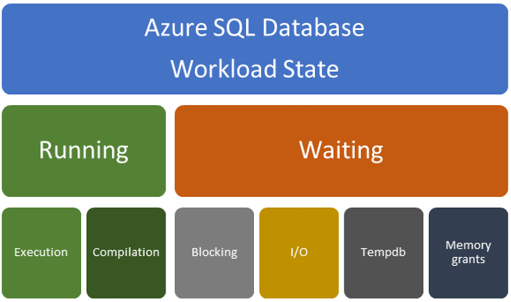 Próbując rozwiązać problem z wąskim gardłem wydajności, zacznij od ustalenia, czy wąskie gardło występuje w czasie, gdy zapytanie jest w stanie uruchomienia, czy w stanie oczekiwania. W zależności od tego ustalenia mają zastosowanie różne rozwiązania. Skorzystaj z poniższego diagramu, aby zrozumieć czynniki, które mogą powodować problem związany z działaniem lub problem związany z oczekiwaniem. W tym artykule omówiono problemy i rozwiązania dotyczące każdego typu problemu.