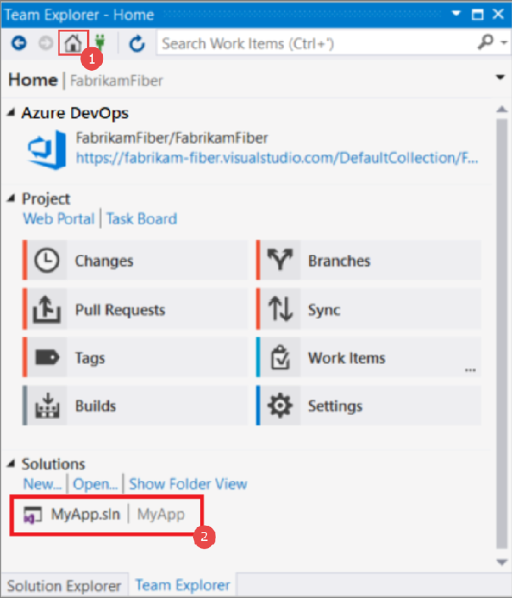1. Open the Home page in Team Explorer.