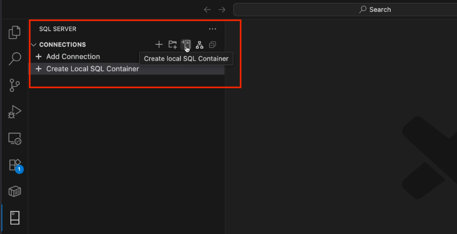 W widoku Połączenia wybierz opcję Utwórz lokalny kontener SQL z menu.