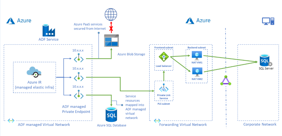 Este tutorial fornece etapas para usar o portal do Azure para configurar o Serviço de Link Privado e acessar o SQL Server local de uma rede virtual gerenciada usando um ponto de extremidade privado. O uso de uma rede virtual gerenciada garante que o tráfego de e para sua fonte SQL local passe por seu próprio ponto de extremidade privado, garantindo assim a exposição à nuvem pública com uma camada extra de segurança e isolamento. Os recursos necessários mencionados abaixo são necessários para dar suporte ao cenário.