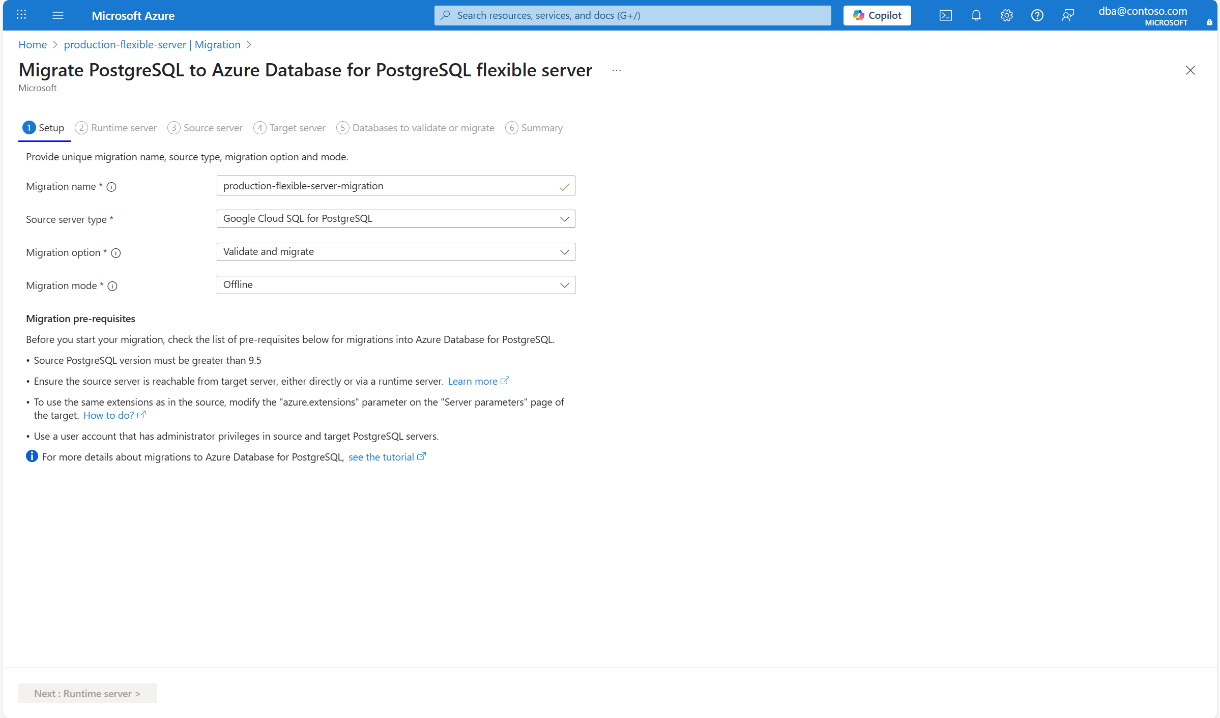 Este artigo orienta-o na migração de uma instância do Google Cloud SQL para o servidor flexível do Azure Database para PostgreSQL em modo offline.