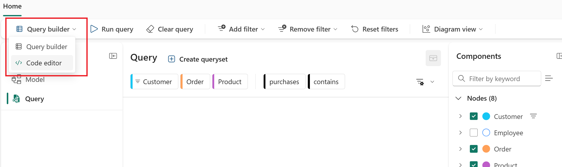 Siga estes passos para mudar para o editor de código e começar a consultar o seu gráfico usando o GQL: