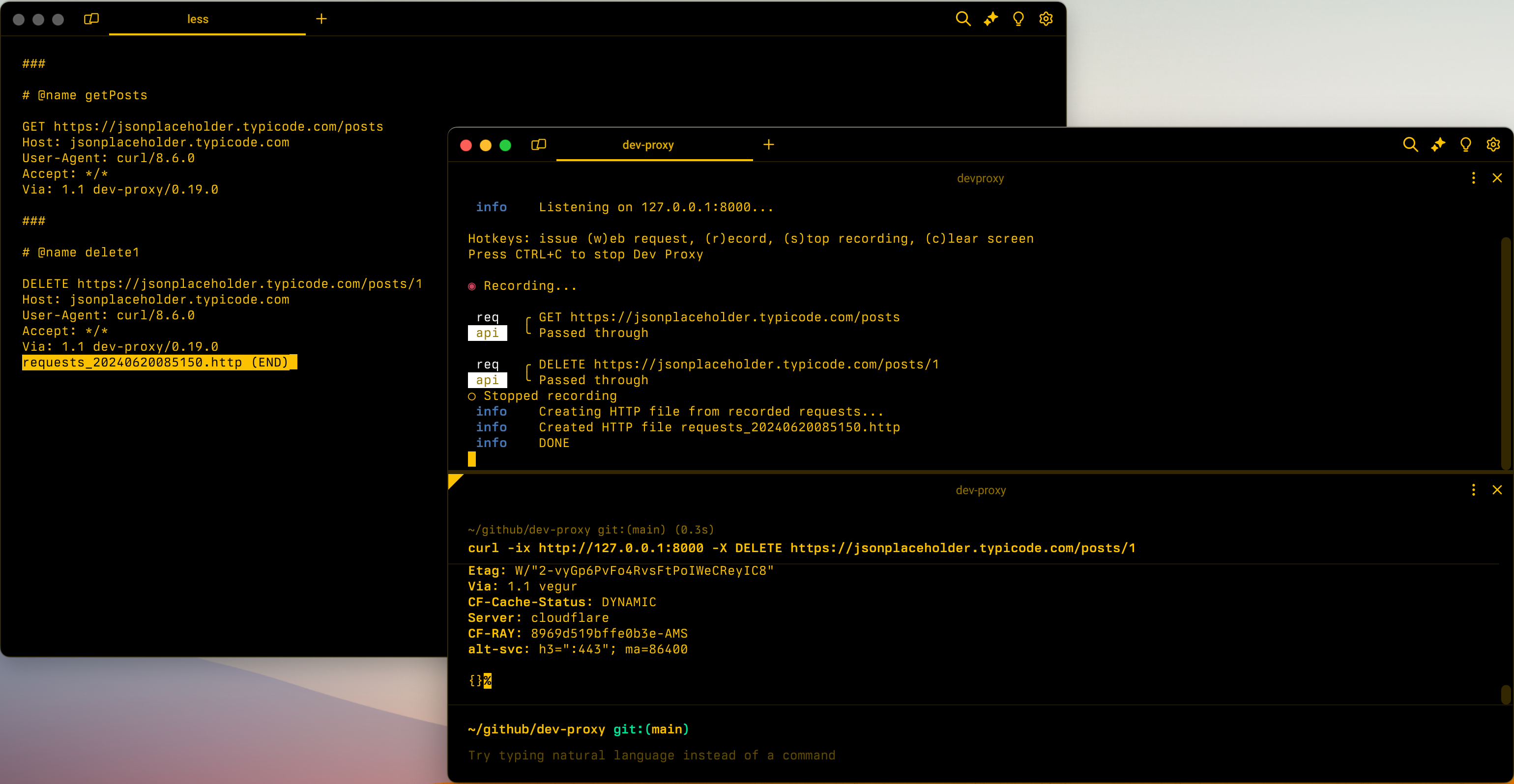 s.O Dev Proxy gera um arquivo HTTP e o salva no diretório atual. O arquivo inclui todas as solicitações e respostas capturadas, com dados confidenciais, como tokens de portador e chaves de API, substituídos por variáveis. Por exemplo: