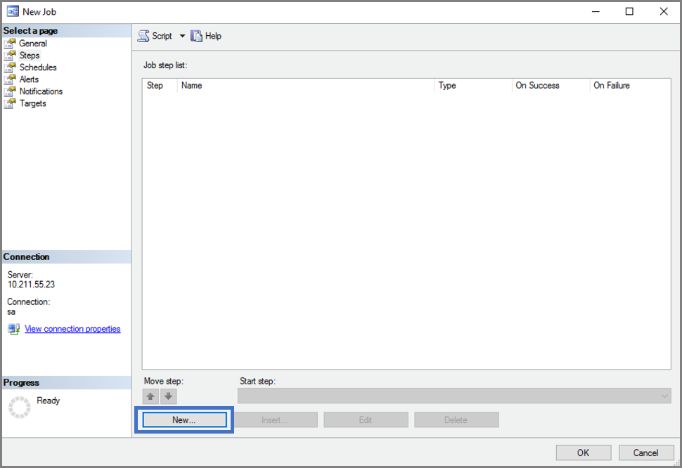 Criar um trabalho com o SSMS