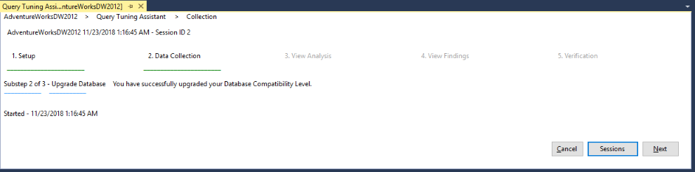 В начальной точке QTA предполагается, что база данных из предыдущей версии SQL Server перемещается (через Attach a Database или RESTORE Statements) на новую версию системы управления базами данных SQL Server, а уровень совместимости базы данных сразу после обновления не изменяется. Направляет по следующим шагам QTA: