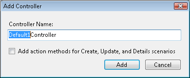 创建控制器时,可以选择自动生成 Create、Update 和 Details 操作方法 (请参阅图 3) 。 如果选择此选项,则会生成清单 2 中的控制器类。