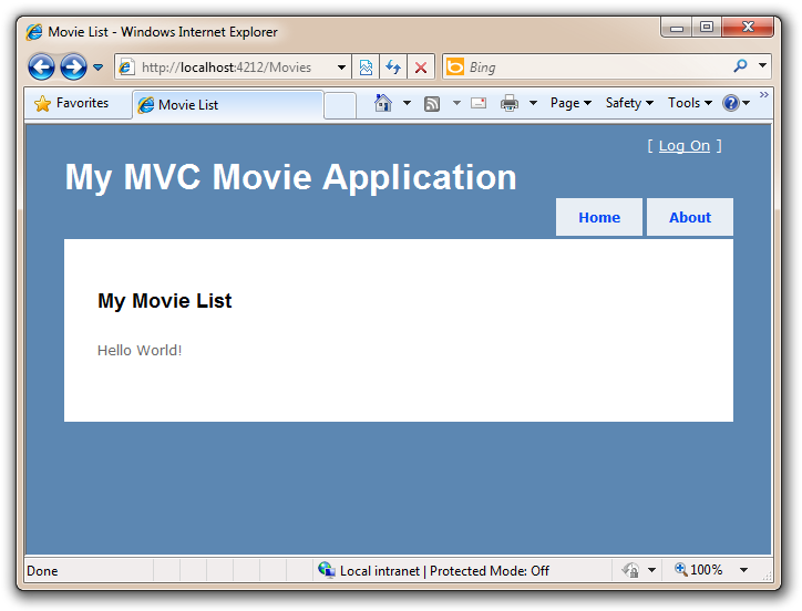 现在,每一页都将具有“我的 MVC 电影应用程序”的主标题(即 H1)。它处理所有页面共享的顶部的白色文本。