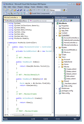 - 项目的 Controllers 文件夹中的MoviesController.cs文件。