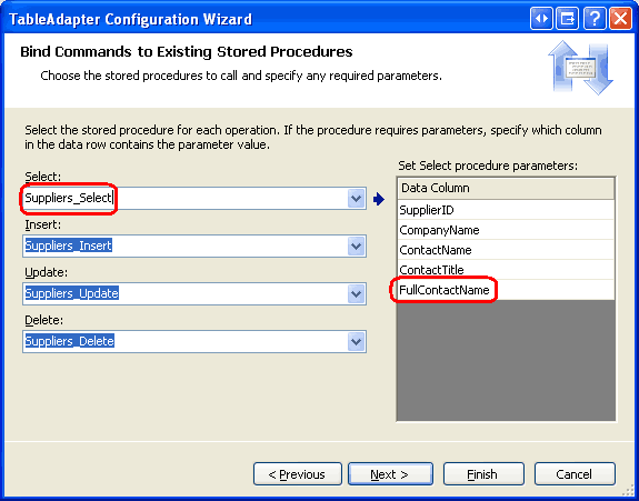 现在,我们需要更新在步骤 3 中创建的 TableAdapter 和 DataTable,以包含 FullContactName 计算列。 这涉及两个步骤: