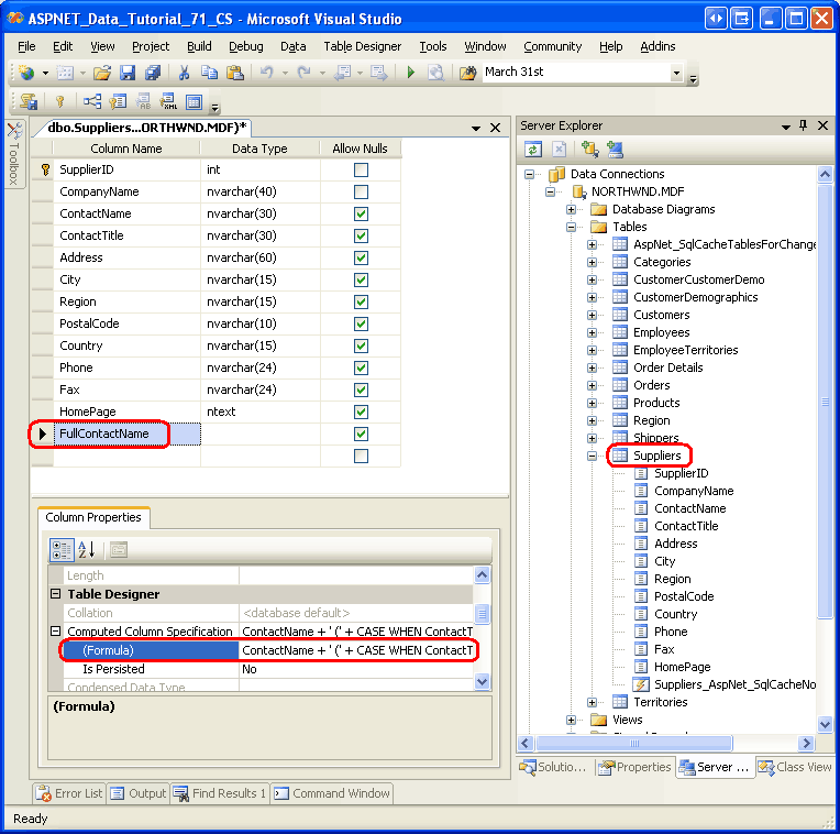 图 1:添加名为 FullContactName 表的 Suppliers 计算列(单击以查看全尺寸图像)
