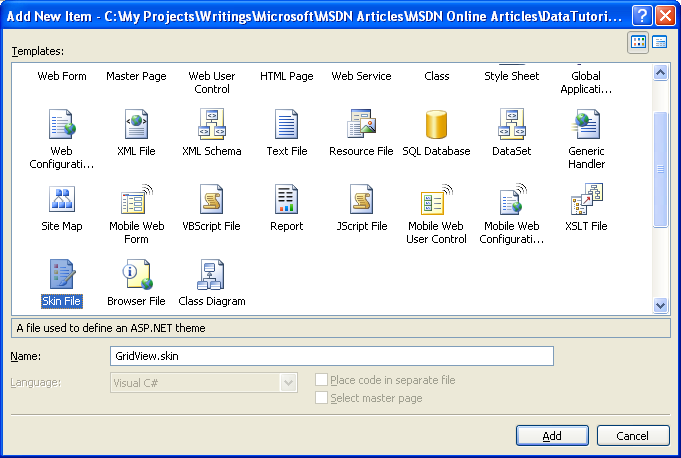 图 9:添加命名 GridView.skin 外观文件(单击以查看全尺寸图像)