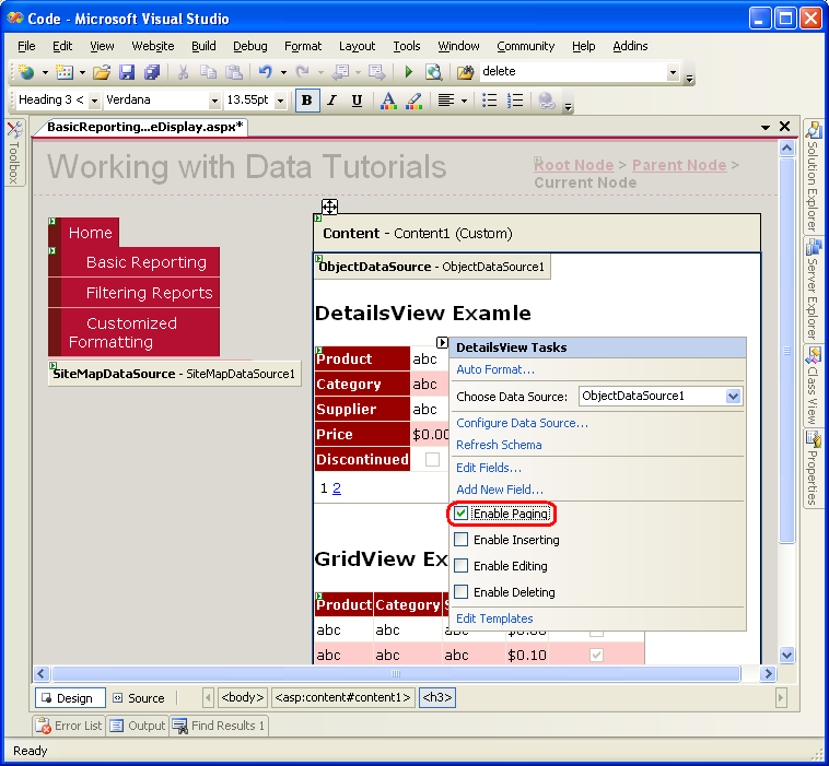 图 13:向页面添加 DetailsView 并将其绑定到 ObjectDataSource(单击可查看全尺寸图像)