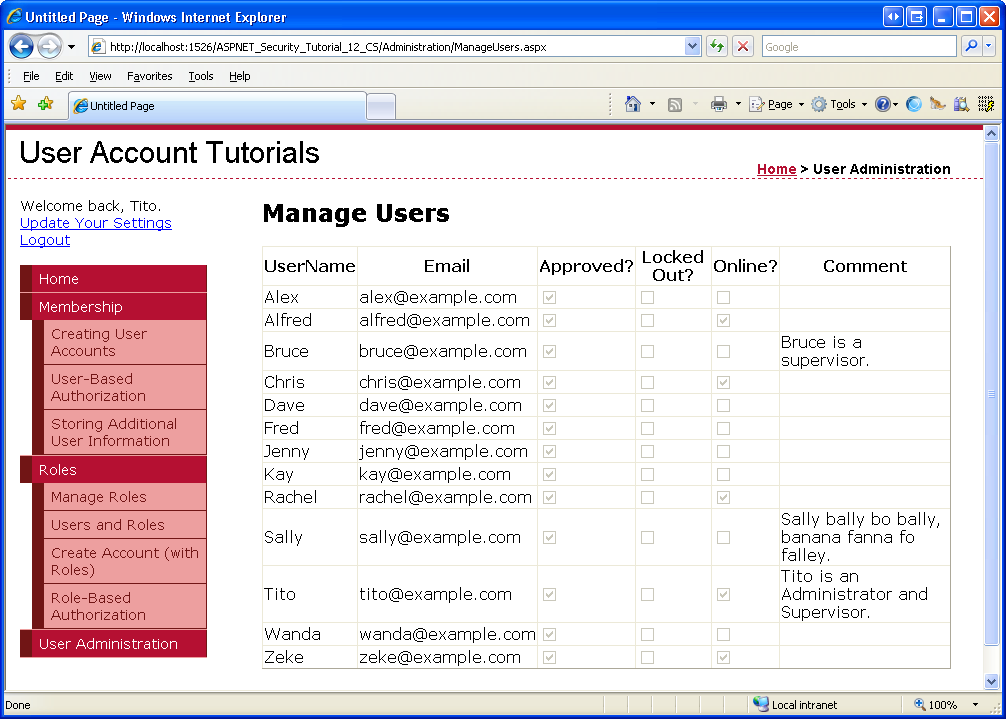 图 5 显示了 ManageUsers.aspx 通过浏览器查看时的页面。