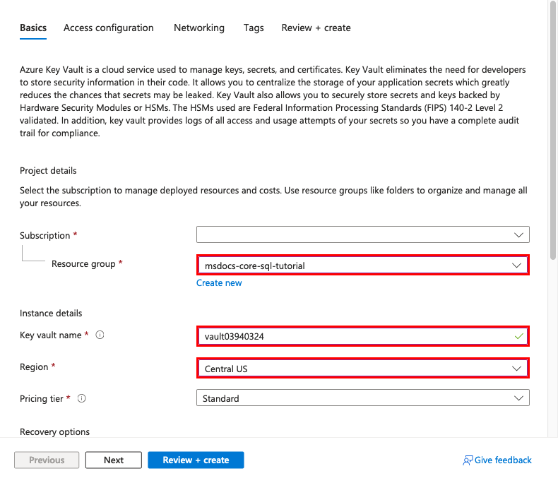 步骤 2:创建密钥保管库以安全管理机密