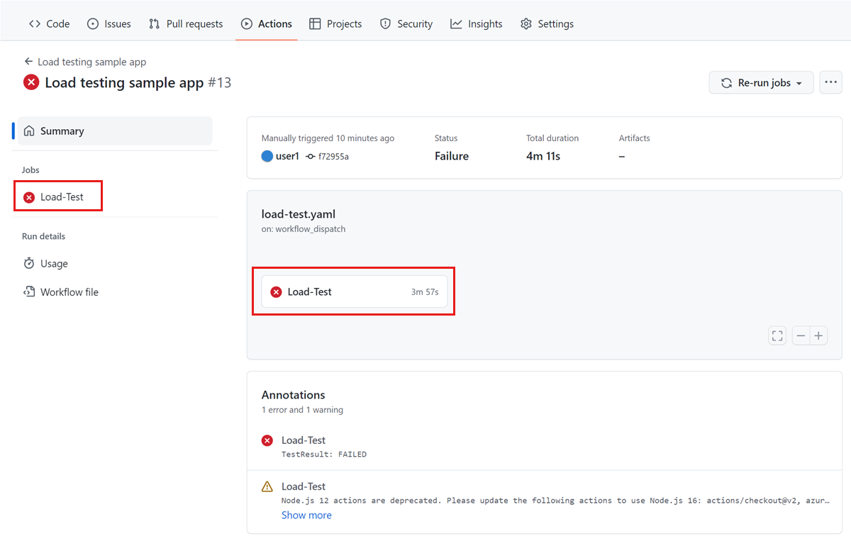 负载测试未能完成时,测试运行的测试状态将设置为“失败”。