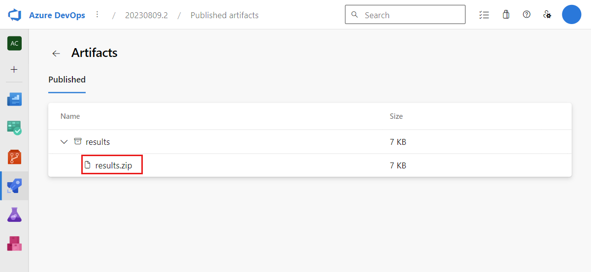 生成的 CI/CD 管道将负载测试结果发布为管道工件。 可以将这些结果下载为 CSV 文件,以便进行后续的报告。