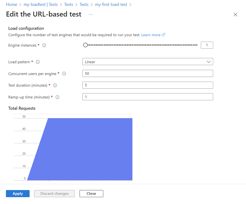 选择“应用”以更新负载测试配置。