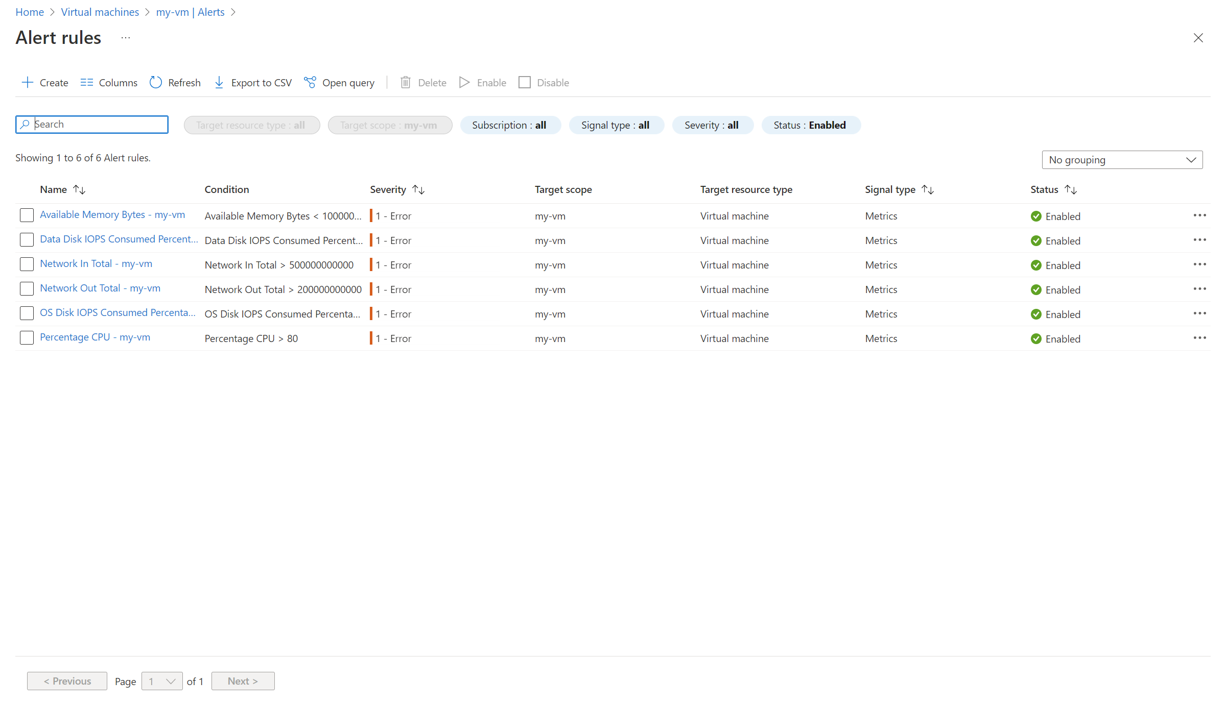 如果在创建虚拟机时选择了“启用建议的警报规则”选项,则本教程中所述的建议警报规则将已经存在。