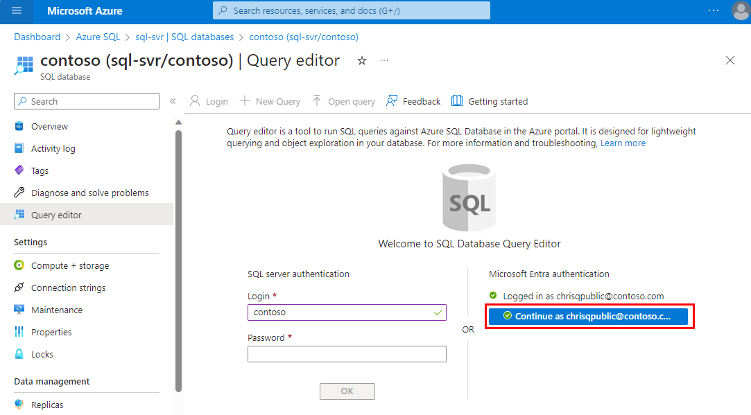 - 使用 适用于 Azure SQL 数据库的 SQL Server Management Studio (最新版本)或 Azure 门户查询编辑器。
