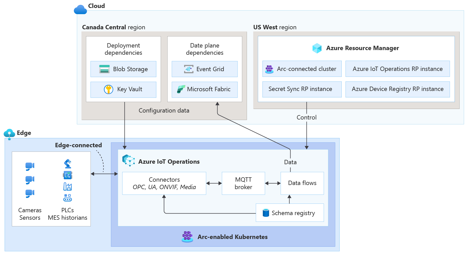 - Azure IoT运营实例的 Azure 资源管理器位置是管理和编排的逻辑参考。