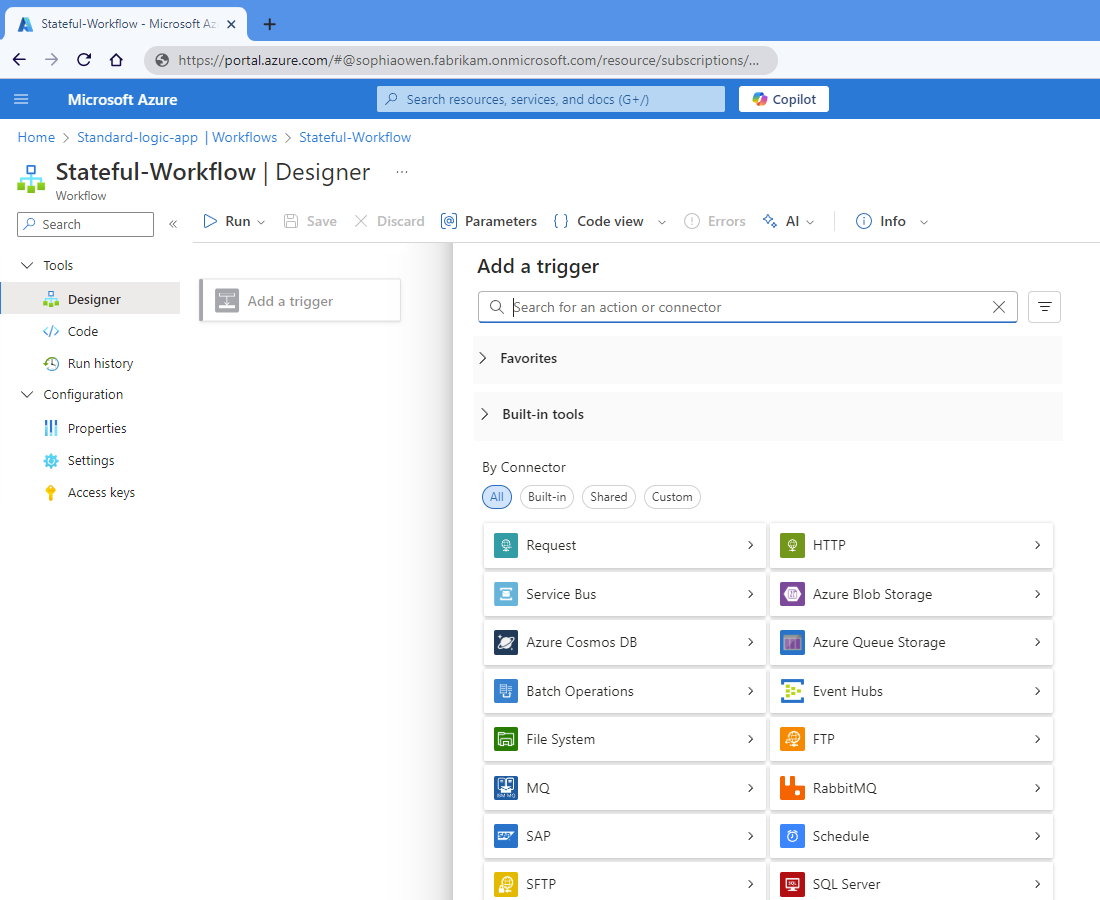 以下标准工作流示例显示了添加触发器时的“共享”连接器库: