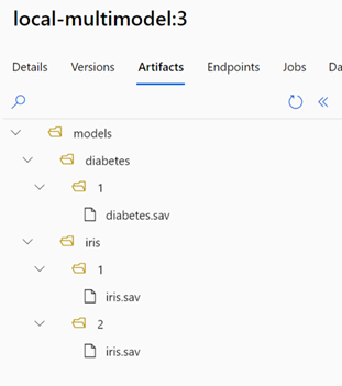 对于此示例,请考虑 local-multimodel:3 包含以下模型项目,可以从 Azure 机器学习工作室中的 “模型 ”选项卡查看该项目: