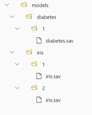 本部分使用本地文件夹结构的此示例来演示如何指定要在联机部署中使用的模型: