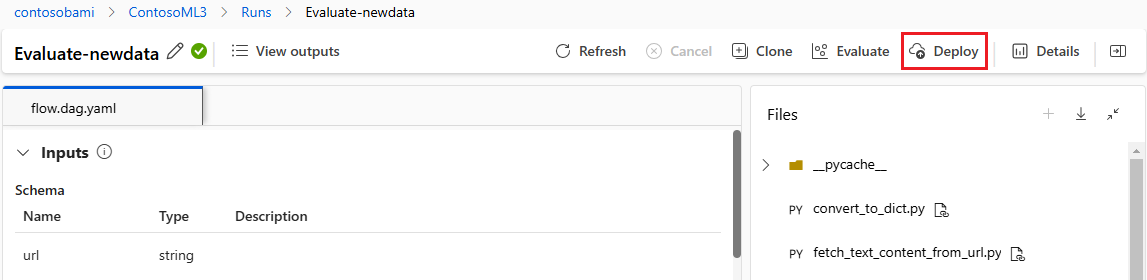 在团队对流的质量完全有信心后,他们就可以在可靠的云环境中无缝地将其部署为联机终结点。 作为联机终结点的部署可基于运行快照,从而实现稳定且安全的服务、进一步的资源分配和使用情况跟踪以及云中的日志监视。
