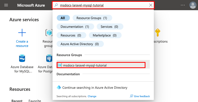 在 Azure 门户顶部的搜索栏中: