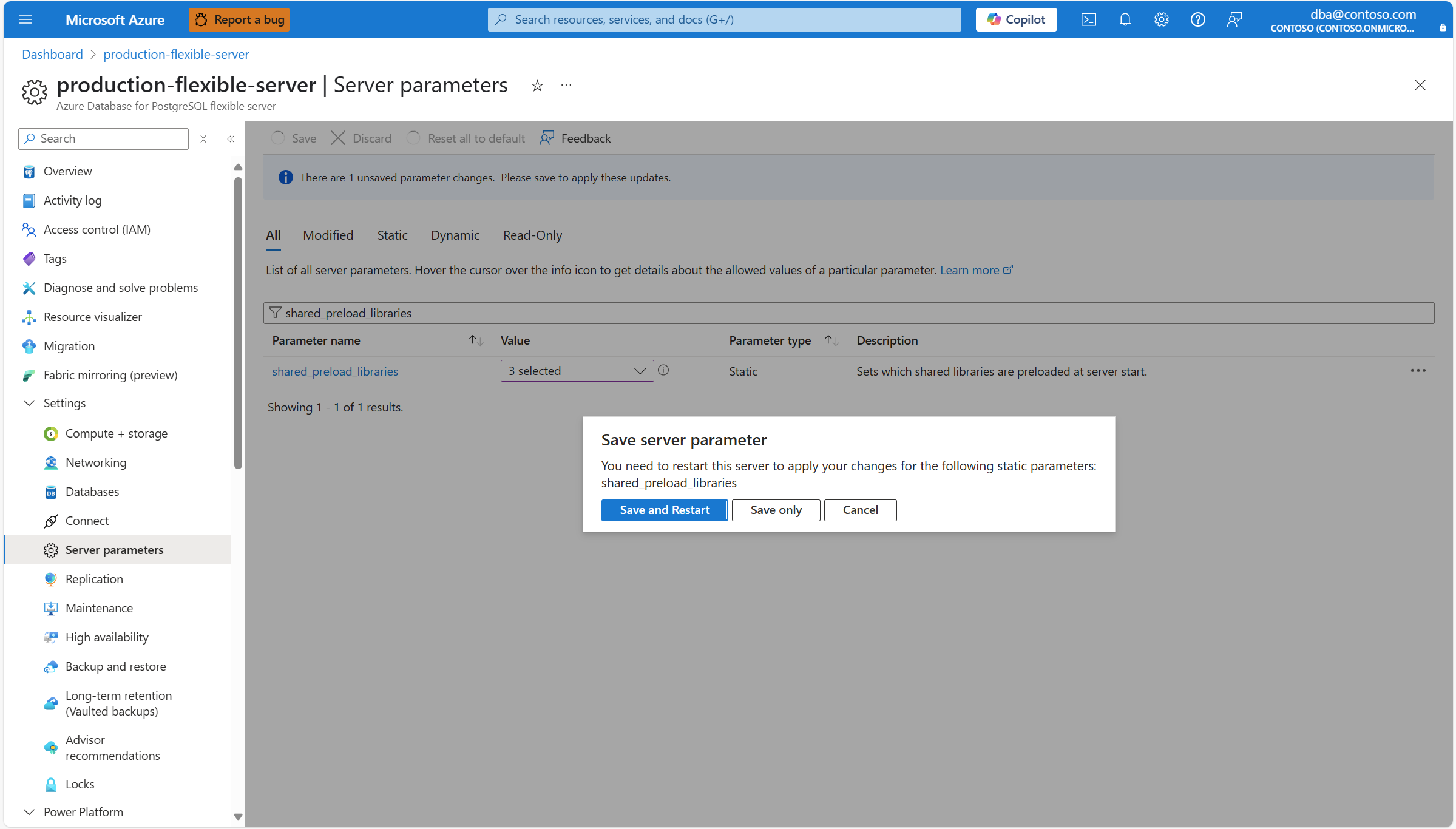 shared_preload_libraries 是一个服务器配置参数,用于确定在 Azure Database for PostgreSQL 灵活服务器实例启动时必须加载哪些库。 必须通过此参数加载使用共享内存的所有库。 如果需要将扩展添加到共享预加载库,请执行以下步骤:
