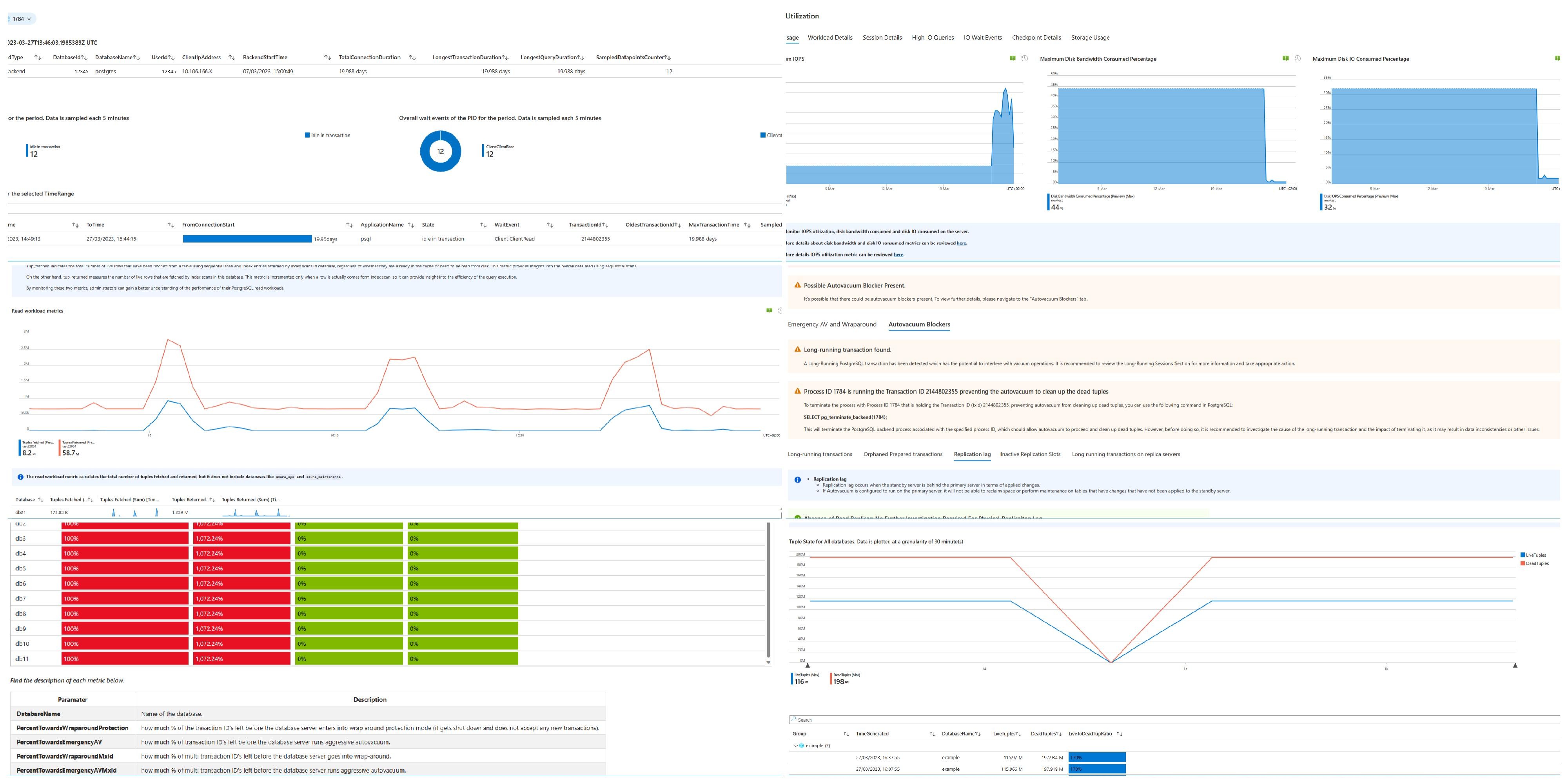 每个指南都包含多个图表、指南和针对可能遇到的特定问题定制的建议,这有助于加快故障排除过程。 故障排除指南直接集成到 Azure 门户和 Azure Database for PostgreSQL 灵活服务器实例中,使其使用方便。
