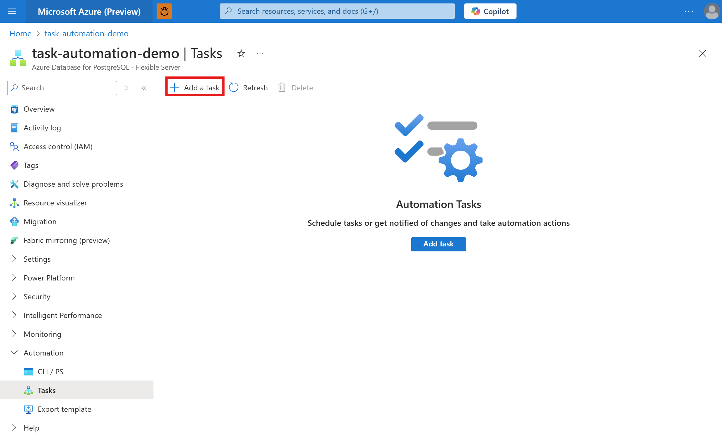 - 在资源导航菜单的“自动化”部分中,选择“任务”。
