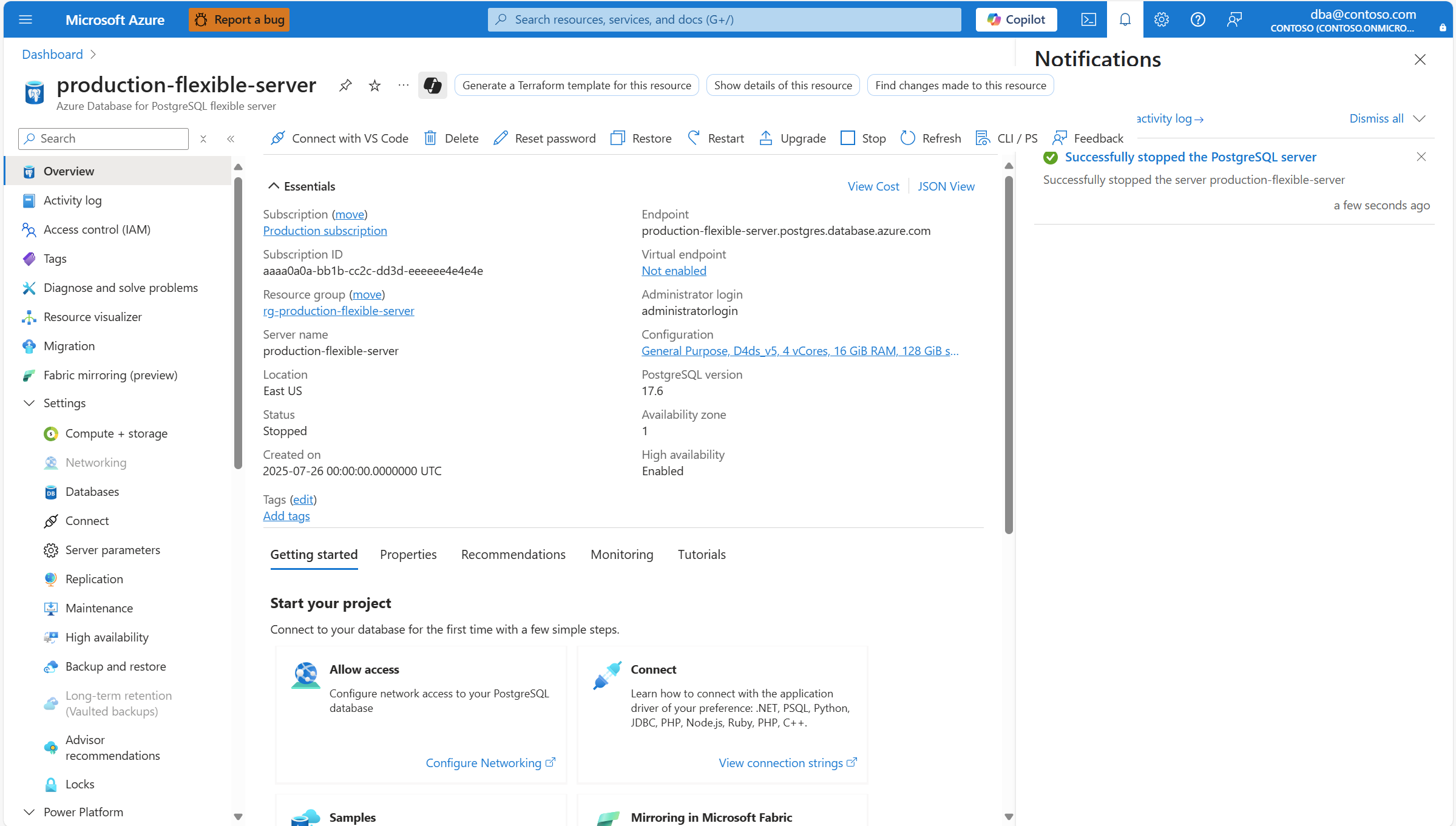 本文提供停止 Azure Database for PostgreSQL 灵活服务器实例计算的分步说明。