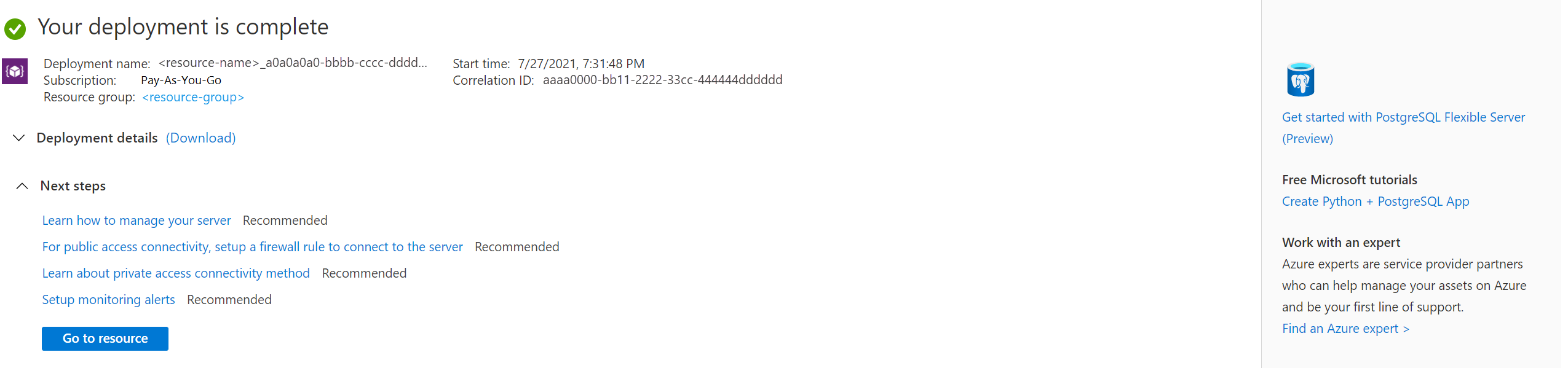 你将使用所定义的一组计算和存储资源创建 Azure Database for PostgreSQL 灵活服务器实例。 请在 Azure 资源组中创建该服务器。