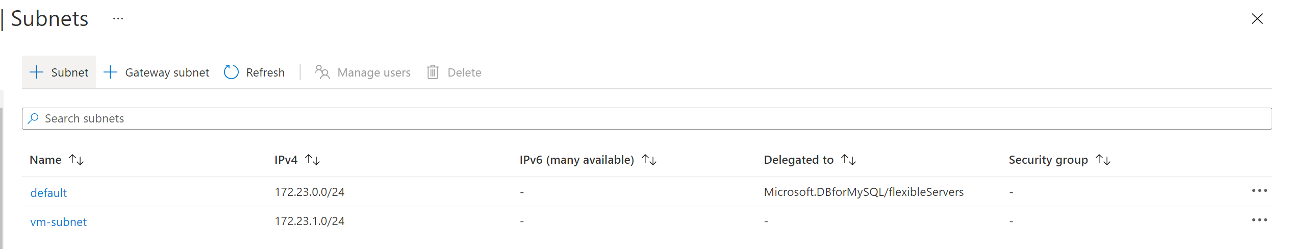 由于服务器位于虚拟网络中,因此只能从与服务器位于同一虚拟网络中的其他 Azure 服务连接到服务器。 若要连接和管理服务器,请创建一个 Linux 虚拟机。 虚拟机必须在相同的区域和相同的订阅中创建。 可以将 Linux 虚拟机用作 SSH 隧道来管理你的 Azure Database for PostgreSQL 灵活服务器实例。