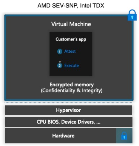 - 受到操作系统、虚拟机监控程序或其他应用程序的保护,无法被访问。