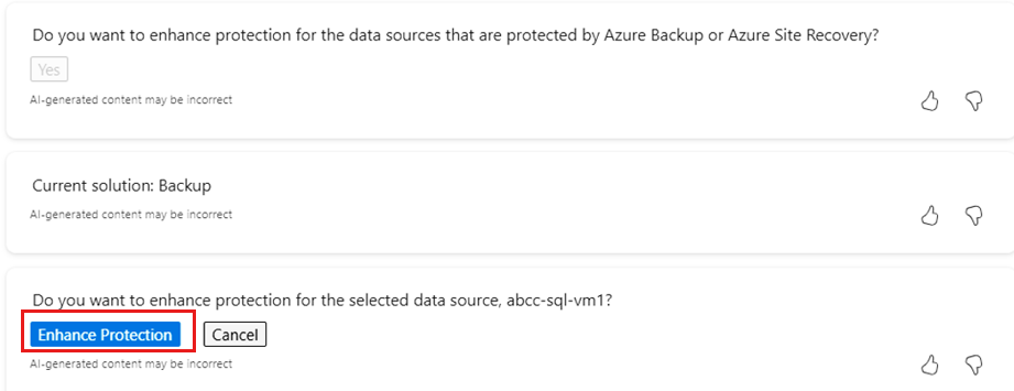 Copilot 还有助于通过增强现有资源的保护来提高复原能力。 借助此功能,可以使用多个可用解决方案来实现保护。