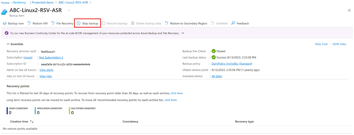 - 使用此功能时,不可变保管库将保持安全。 只能通过保留数据来停止保护,根据分配的保留策略,旧恢复点继续受到保护。
