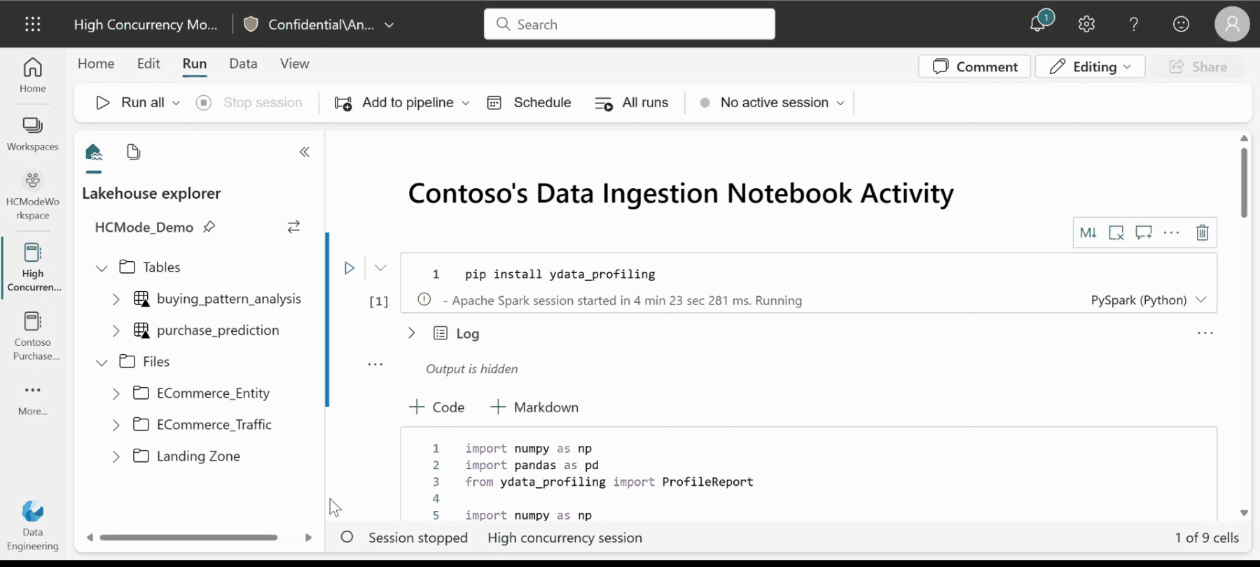 在本文档中,你基本了解了笔记本中通过高并发模式实现的会话共享。 前往下一篇文章,了解如何使用 Lakehouse 和 Notebooks 创建并开始使用你自己的数据工程体验: