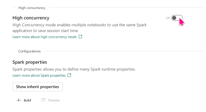 默认情况下,所有 Fabric 工作区都以高并发模式启用。 使用以下步骤配置高并发功能: