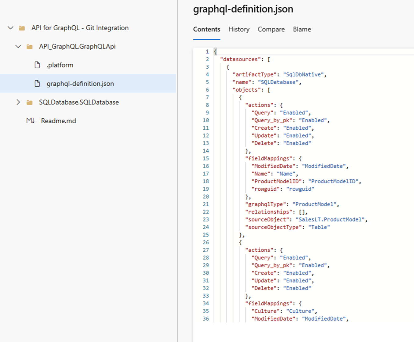 当您将 GraphQL 项的 API 提交到 Git 存储库时,GraphQL 项的定义将被存储。 当同步回 Fabric 工作区时,此方法支持精确恢复: