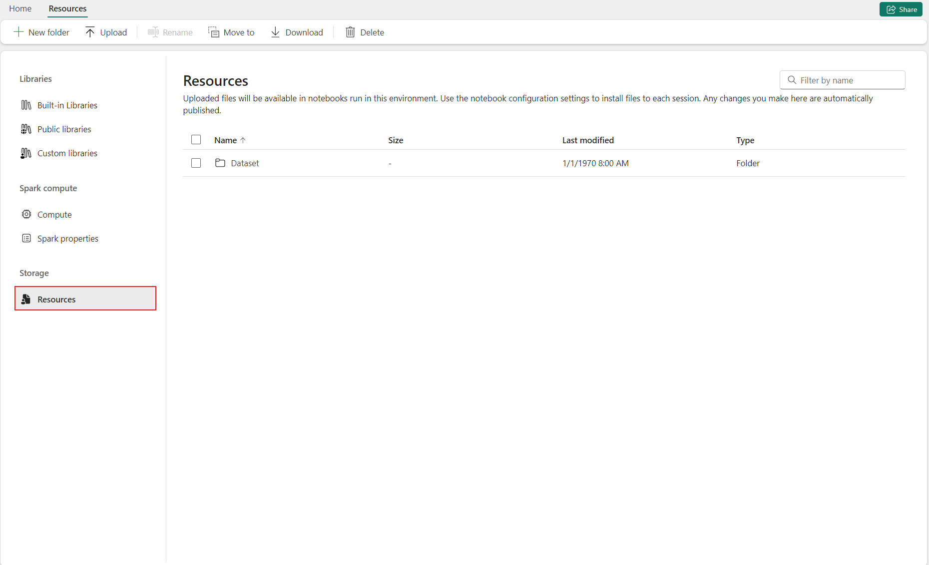 内置资源文件夹是每个笔记本唯一的系统定义文件夹。 建议使用内置资源文件夹来存储当前笔记本中使用的任何数据。 下面是笔记本资源的关键功能。