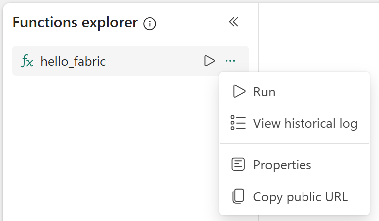 函数必须可公开访问。 在 Functions 资源管理器中,将鼠标悬停在函数的名称上,然后选择显示的省略号图标 (...),然后选择“属性”。 在打开的“属性”窗格中,启用“公共访问”。 还应记下要在 Python 应用程序中使用的公共 URL。