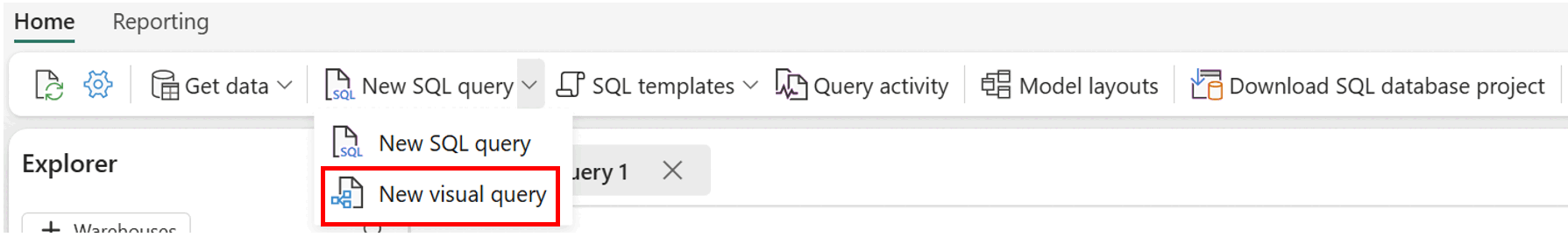 在功能区中,使用“新建可视化查询”按钮创建一个新查询,如下图所示。
