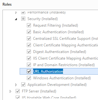 要支持和配置 Web 服务器上的站点和应用程序的授权,必须安装 URL 授权模块。 为此,请按照以下步骤操作。
