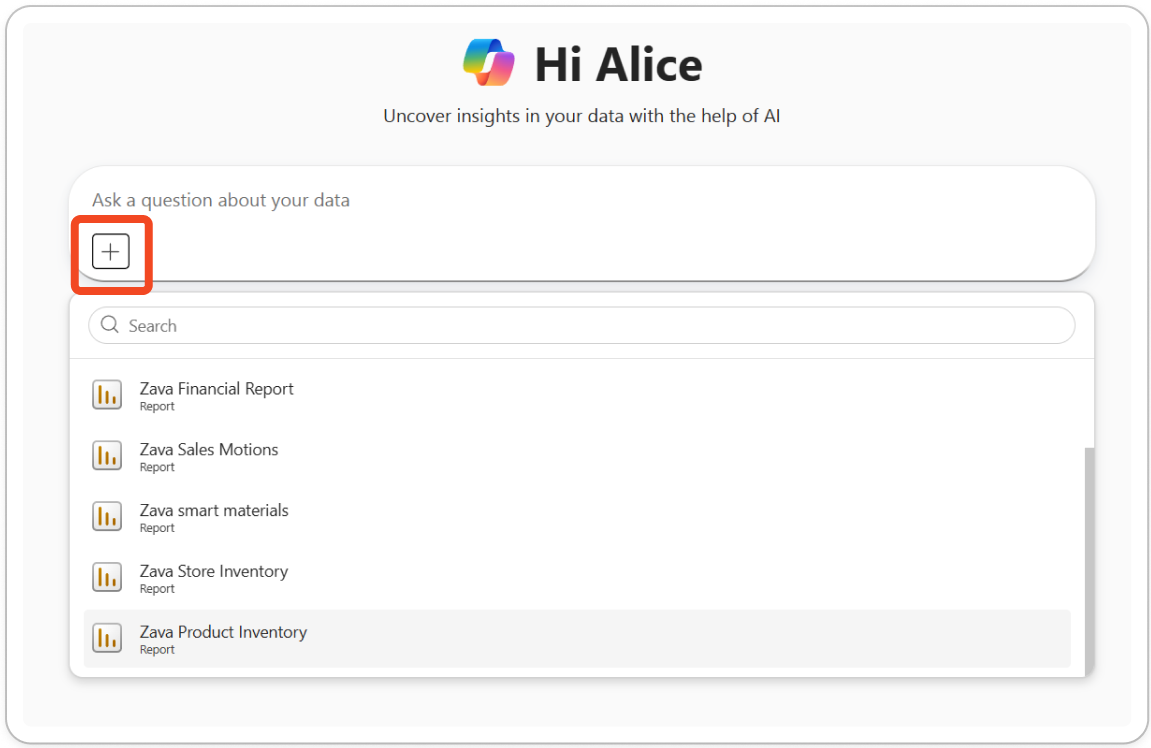 有时,你可能希望根据特定项目询问有关数据的问题。 在应用范围的Copilot中,可以附加特定报表供Copilot引用。