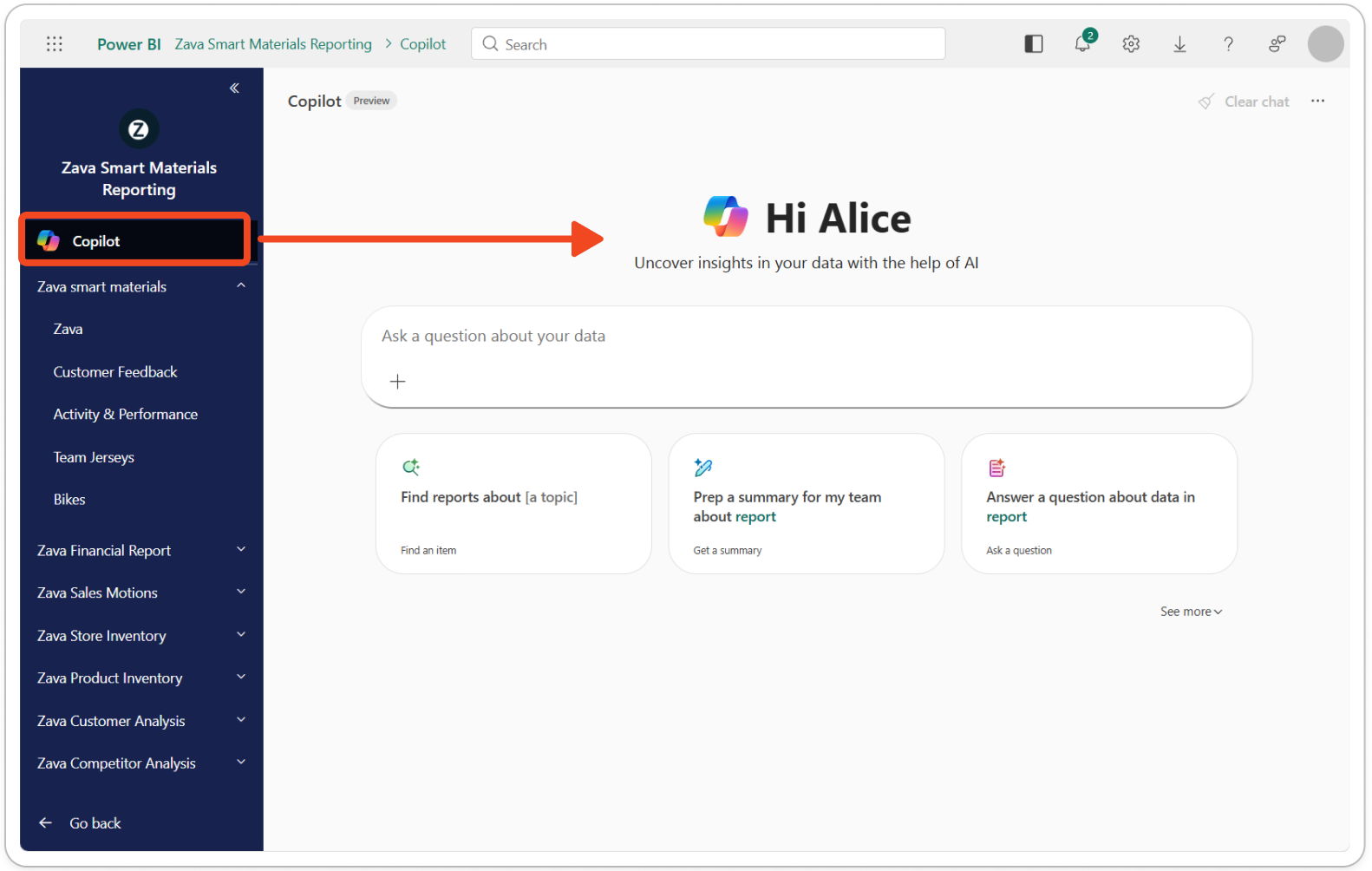 - Power BI 应用对应用中包含的报表项进行版本控制。 应用作者,为了确保 Copilot 使用报表的最新更改,请更新应用。